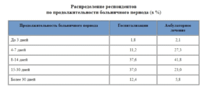 Средняя продолжительность больничного периода длилась 19 дней, а в старших возрастных группах (50 лет и более) – около 4 недель. На эти группы приходился и пик частоты заболеваемости.
