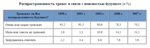 Судя по данным многолетних опросов населения, проводимых Социологическим центром РАГС по общенациональной репрезентативной выборке, состояние неуверенности многих людей в завтрашнем дне приобрело хронический характер (таблица 3).