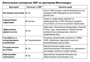 Следовательно, ОКР соответствует критериям государственности по Монтевидео в юридическом, хотя и не в полном де-факто смысле.